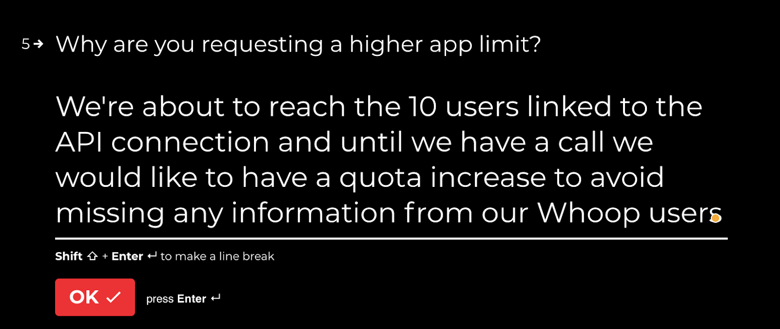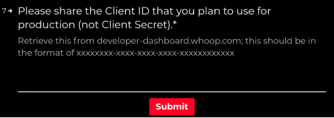 The client ID, displayed on the Whoop dashboard, can be used for review purposes.