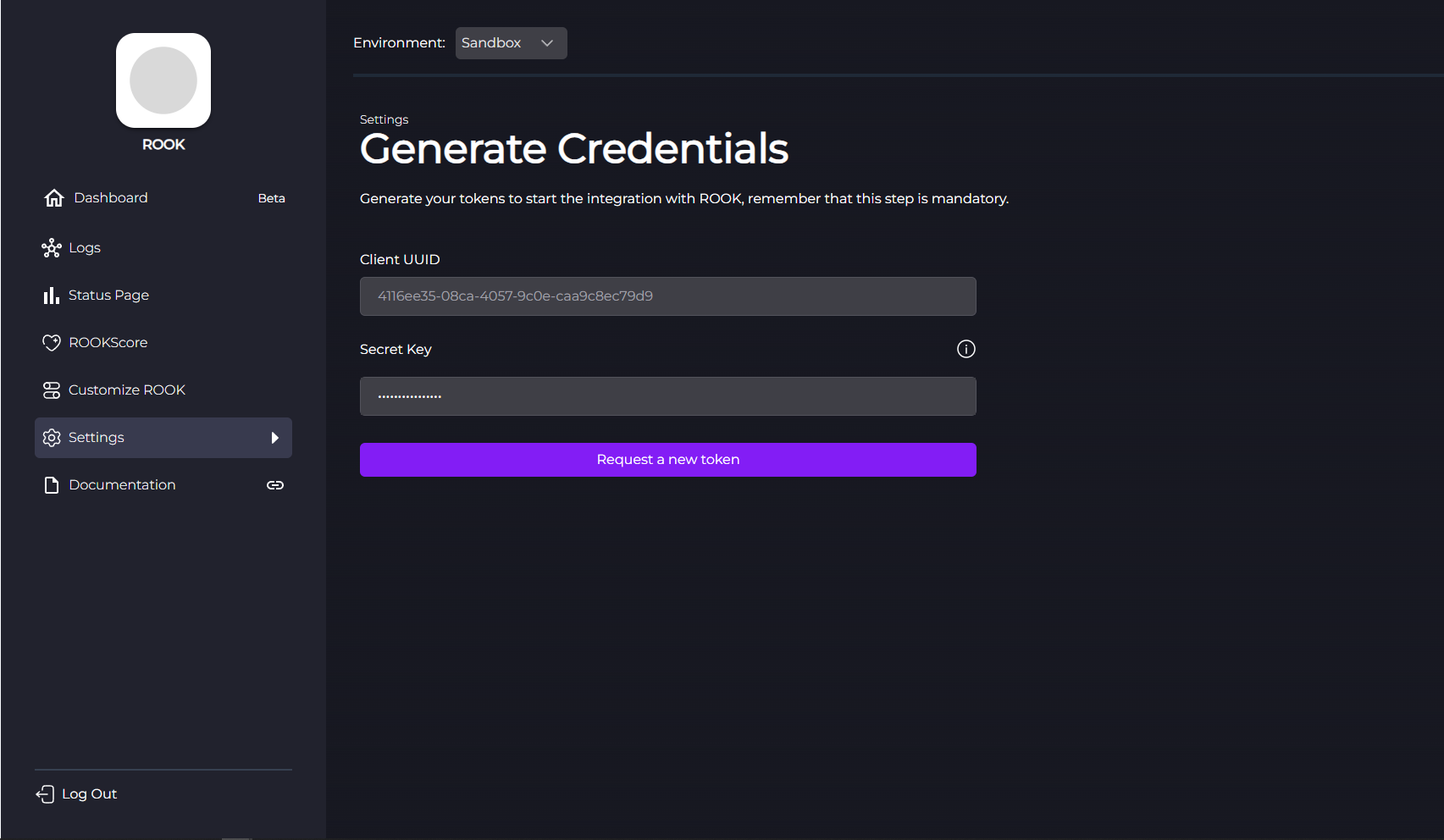 To see your secret client UUID, simply login to your ROOK portal account and navigate to the Settings > Generate Tokens section.