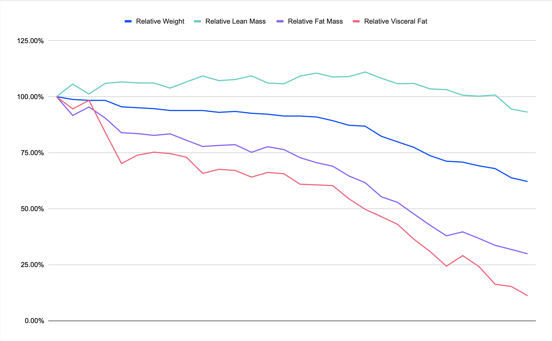 This individual was able to lose nearly 100 lbs in under 8 months without compromising her lean mass. She is one of many who are participating in a personalized weight loss revolution, powered by Prism Labs.